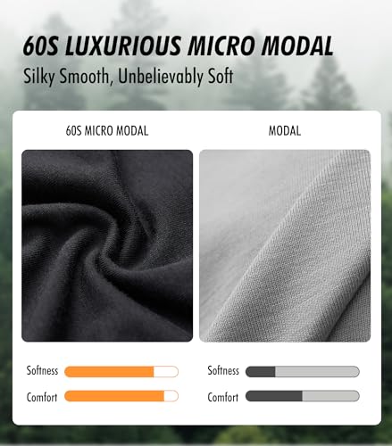 • PREMIUM SOFT & BREEZY FEEL: Superfine 60S micro modal underwear is incredibly soft and cozy, 3X softer than cotton, naturally thermoregulating, cooling hand feel. This moisture wicking mens underwear is ideal for travel, lounging, office work, daily wear.