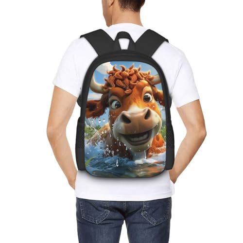 Commuter Unisex Cartoon Cow River Backpack Spacious Compartments for Work Essentials Casual Outings & Trips 17 Inch 6