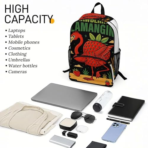 Strawberrini-Flamangini Merch Large Travel Backpack Italian-Brainrot Meme Waterproof Lightweight Daypack White 44x32x19cm 3