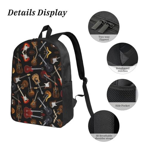 • Adjustable Backpack: The Guitars print Lightweight Bookbag features adjustable shoulder straps, allowing you to customize the fit for maximum comfort during use.