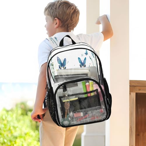 HOT ! Wildflowers and Butterflies Clear Backpack - Stadium Approved Large 15.7-inch Waterproof Transparent Bag for Sports, Concerts, Work, Travel#296