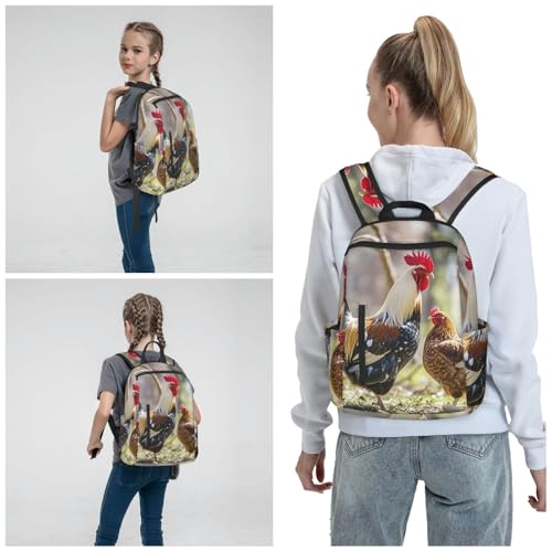 Backpack 14.7 inch Lightweight Large Bookbag Rooster and hen Daypack for Travel Office Work 3