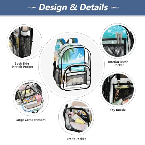 Sea Beach Palm Tree Clear Backpack - Stadium Approved Large 15.7-inch Waterproof Transparent Bag for Sports, Concerts, Work, Travel#166 4