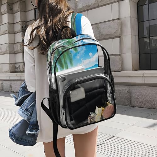 HOT ! Sea Beach Palm Tree Clear Backpack - Stadium Approved Large 15.7-inch Waterproof Transparent Bag for Sports, Concerts, Work, Travel#166