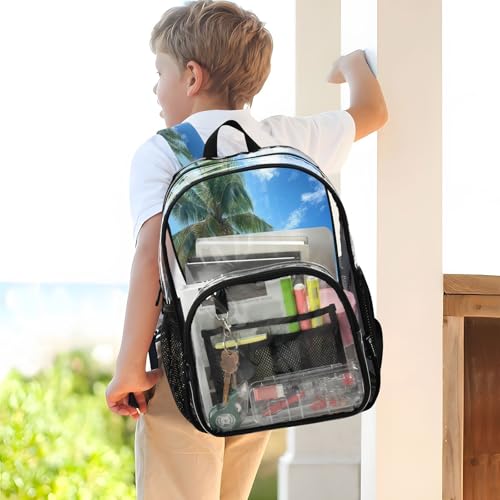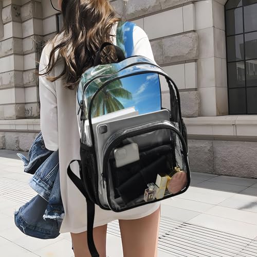 HOT ! Beautiful Tropical Beach Clear Backpack - Stadium Approved Large 15.7-inch Waterproof Transparent Bag for Sports, Concerts, Work, Travel#12