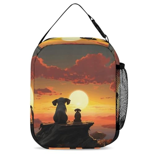 Elephant And Dog Watch The Sunset Backpack Set 3 Piece, Durable Backpack Insulated Lunch Bag Portable Pencil Case for Men Women 6
