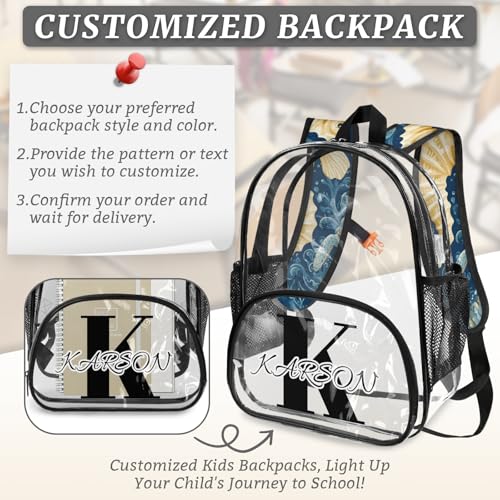 • PERSONALIZED CLEAR BAG: Each clear backpack strap is printed with exquisite patterns. Various patterns are available for you to choose from. Please click the "Customize Now" button and enter the name you want to customize