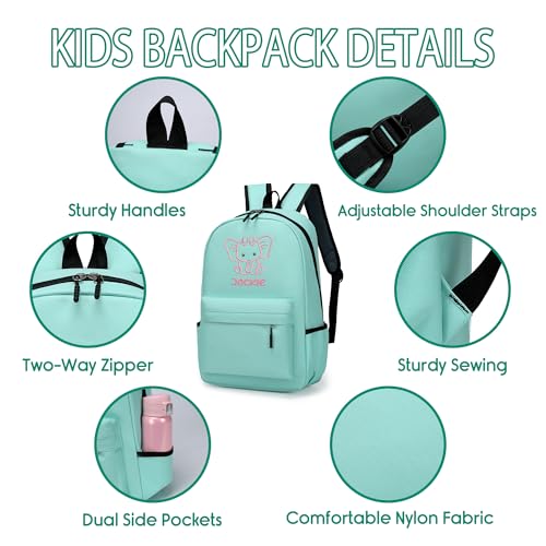 Personalized Kids Backpack For Teens Girls, Custom Cute Elephant School Bookbag Embroidery Name, Preschool Elementary Toddler Backpack With Adjustable Padded Straps, Kids Back To School Gifts 5