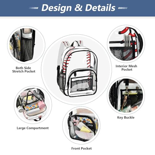 Clear Backpack Transparent School Backpack Heavy Duty PVC Bookbag Baseball for Stadium Events and Concert Work Sport Event Heavy Duty 7