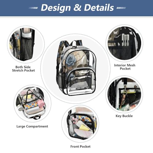 ALAZA Skeleton Blue Rose Skull Clear Backpack PVC Transparent Bookbag Heavy Duty for Student Boy Girl Kids Adult School Travel Work 5