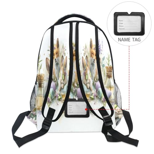 Rabbit Fox Hedgehog Watercolor Backpack for School Boys Girls Adults Kids Bookbag Laptop Bag 18L 4