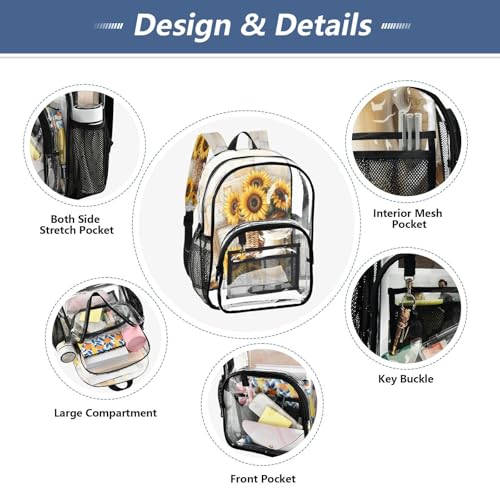 More information about Vintage Sunflower Vase Clear Backpack Heavy Duty See Through Transparent PVC BookBag for Kids Boy Girl School Work
