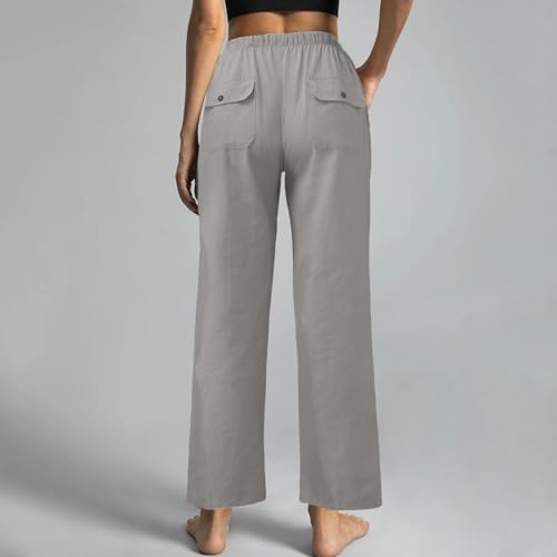 Cotton Linen Pants Women 2025 Casual Straight Leg Drawstring Elastic Hight Waist Trousers Pockets Loose Palazzo Pants 2