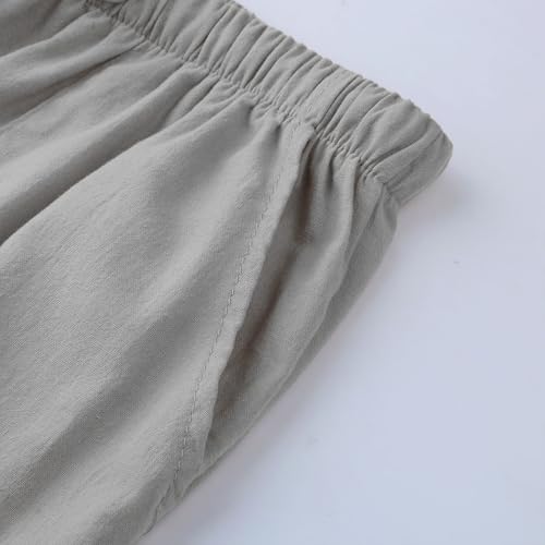 Cotton Linen Pants Women 2025 Casual Straight Leg Drawstring Elastic Hight Waist Trousers Pockets Loose Palazzo Pants 4
