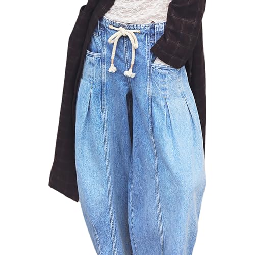 More information about Womens Casual Drawstring Jeans Trendy 2025 Elastic Waisted Boyfriend Baggy Wide Leg Denim Pants