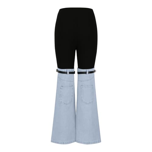 More information about Women Patchwork Flare Jeans Stretch High Waisted Bell Bottom Denim Pants Wide Leg Fashion Y2k Color Block Trousers