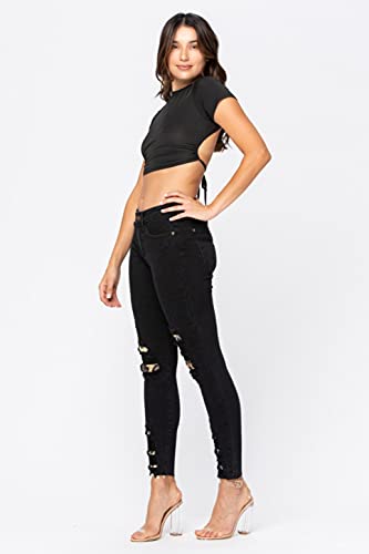 Judy Blue Black Destroyed Leopard Patch Mid-Rise Skinny Jeans! Show Your Wild Side! (Style: 82168) (15) 7