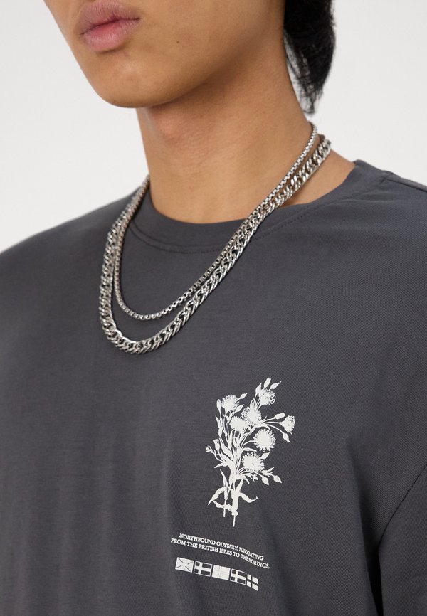 SLHLOOSEALP O NECK TEE - Print T-shirt - asphalt 3