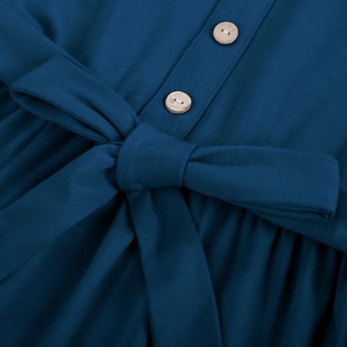GRACE KARIN Girls Fall Long Sleeve Dress for Girl Rullfe Button Casual Flowy Tiered Dresses with Pocket 6-14Years 5