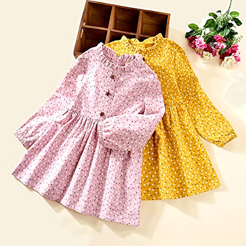 VINUOKER Toddler Girls Cotton Dress Floral Dress for Little Girls midi Dress 2-7years Fall Winter Dress 4