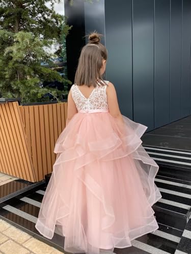 Flower Girl Dress for Wedding Lace Flower Tulle Princess Birthday Party Dresses Kids Long Prom Gown with Satin Sash 6