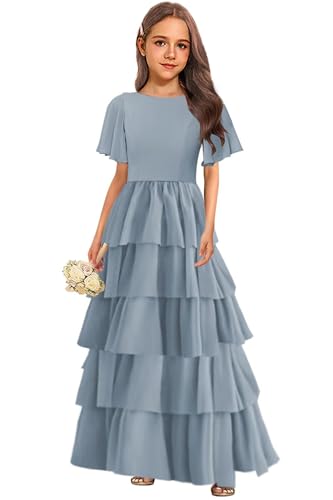 More information about Tiered Chiffon Junior Bridesmaid Dresses for Wedding Short Sleeve A-Line Bow Flower Girl Dress Party Pageant Gowns