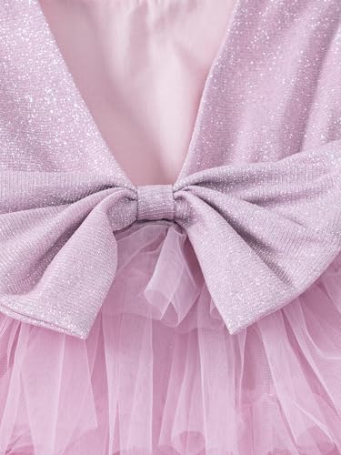 • Design:The first birthday dress for girl features an elegant V-neck design with a large bow on the back, adding a sweet and stylish touch. The glitter material shines in the light, making the little princess the focal point of a party or special occasion