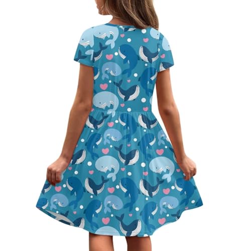 Girls Summer DressCrew Neck Sundress Casual Short Sleeve Midi Dress with Pockets for 2-14 Years 5