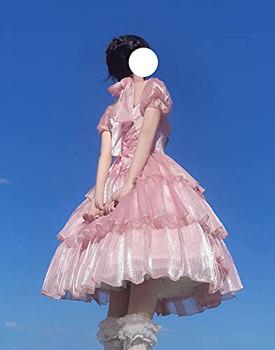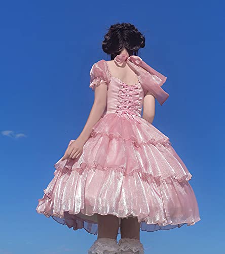 ZZEQYG Womens Lolita Dress for Girl Gothic pink puff sleeve dress with Bow 1