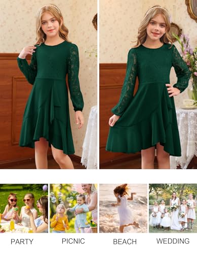 • 【PRINCESS STYLE DESIGN】Fairy flower girl dress, first communion dress, fancy flower girl dress, girls formal dress, pageant dresses for Girls features Lace Embellished, Crew neck, Puff Long Sleeve, Solid color, High waist, Pleated details, A-Line, Zipper Back,Dress with belt, Knee Length, Tulle ruffle hem, Full lining. Perfect for toddler girls/ little girls/tween girls/ junior girls/ preteen