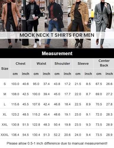 • 【Fashion Design】This mens mock neck t shirt features a unique half-high collar design, knitted fabric, slim fit, solid color, a perfect fusion of classic and fashion elements.Versatile, comfortable and stylish, a great addition to any wardrobe.