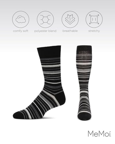 MeMoi Men's Slick Stripes Luxuriously Soft Cashmere Blend Crew Socks Black 10-13 5