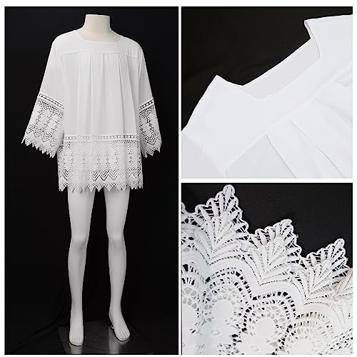 More information about White Surplice Pastor Robe Catholic Pleated Lace Liturgical Short Sleeves Shirt Top