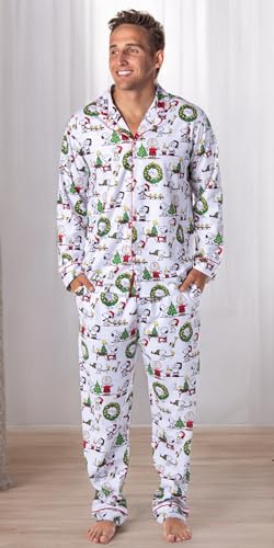 • CLASSIC DESIGN - Our "Peanuts" pajama wear is well-known for its comfy yet stylish fit. The soft fabric allows you to rest in the design of your favorite characters from the series--characters like Charlie Brown, Woodstock, and Snoopy, in a fun Christmas theme. Charlie Brown, Snoopy, and Woodstock are seen in a tossed print getting ready for the Holidays, with wreathes, Santa hats, and Christmas trees!