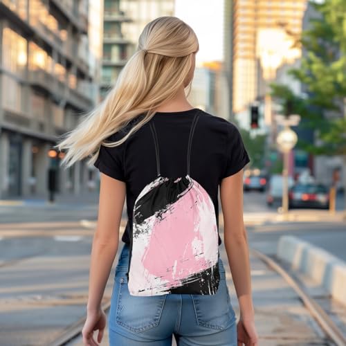 Feelyou Abstract Art Drawstring Backpack Geometric Gym String Bag Decor Stripe Line Drawstring Bags Modern Striped Art Waterproof Cinch Bag Bedroom Pink Black White 4