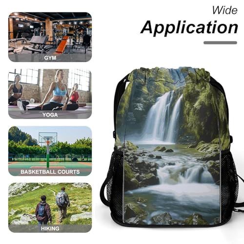 • Versatile for Active Use: This Waterfall Landscape Painting Sports Backpack for Women Is Suitable for Gym, Swimming, Work Commuting, Beach, Travel, Shopping, Training, Hiking, And Other Occasions. The Waterfall Landscape Painting Cinch Bags Drawstring Is Suitable for Both Men and Women and Makes a Great Gift for Your Loved Ones
