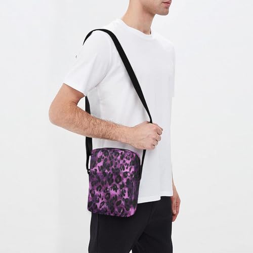 mens messenger bag crossbody bag men Shoulder Handbags Adjustable Strap for outdoor sports outdoor sports- Black Purple Leopard 7