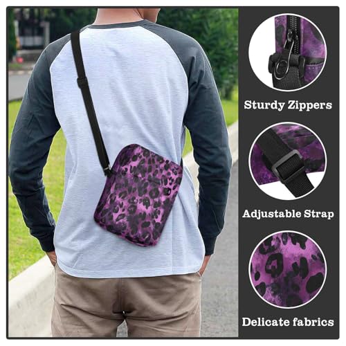 mens messenger bag crossbody bag men Shoulder Handbags Adjustable Strap for outdoor sports outdoor sports- Black Purple Leopard 2
