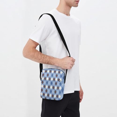 messenger bags for women over the shoulder bags for men Shoulder Handbag For Travel Adjustable Strap for outdoor sports outdoor sports- Checkered Blue White Brown 7