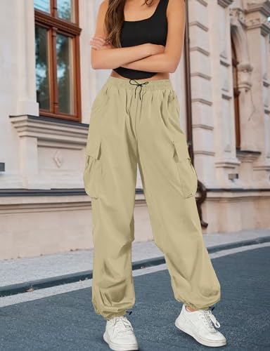 HOT ! Buauty Womens Cargo Pants, Black Baggy Parachute Pants with Pockets Trendy Cargo Sweatpants Joggers for Women, Y2k Pants