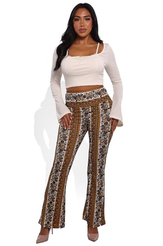 ShoSho Womens Flare Palazzo Pants Casual Boho Bell Bottoms Wide Leg Buttery Soft Bottoms 7