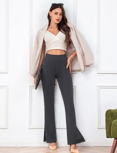 HOT ! Houmous 31'' Inseam Women High Waist Split Hem Flare Work Pants with Pockets Stretchy Pull On Long Pant Casual Slack