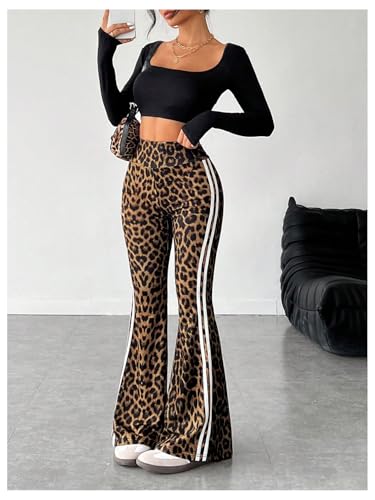 HOT ! Verdusa Women's Y2K Striped Leopard Print Flared Pants High Waisted Bell Bottoms Fitted Trousers