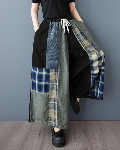 More information about ellazhu Women's Pants Patchwork Two Side Pockets Wide Leg Elastic Waist Baggy Straight Hem Casual GZ428 A