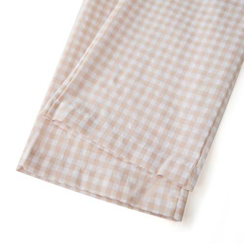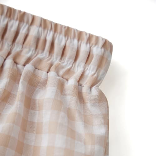 Women's Summer Casual Pants Plaid Drawstring High Waist Straight Leg Trousers 6