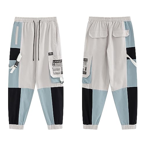 MEINVQIAOTI Cargo Pants Women Street Hip-hop Loose Multi-Pocket Stitching Streamers Pants for Teen Girls(Blue,2XL) 4