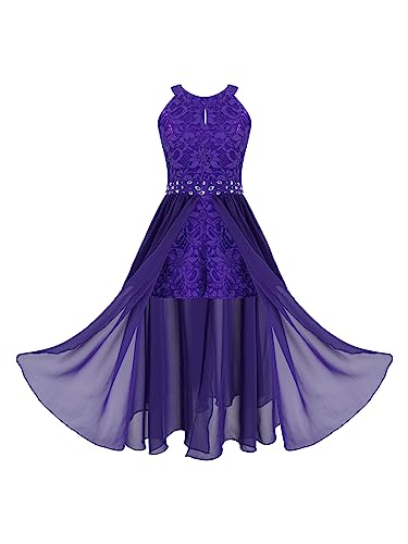 Girls' High Neck Romper Maxi Dress Flower Girls Dress Sleeveless Floral Lace Wedding Pageant Ball Gown Dance Wear 6