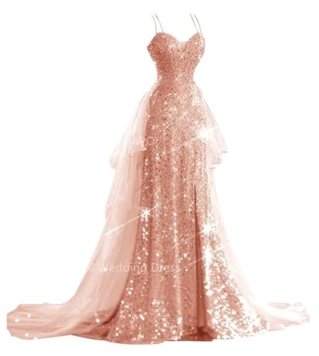 • CWOAPO Feature:Sparkly Sequin Prom Dresses with Tulle Train,Spaghetti Straps,Sweetheart Neck,Mermaid,Sleeveless,Formal Dresses Evening Gowns with Slit,Lace up Back,Built in bra,Floor Length.