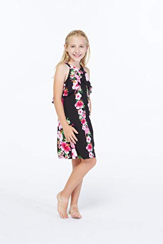 More information about Girl Hawaiian Round Neck with Ruffle Dress in Pink Hibiscus Vine