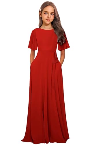 More information about Chiffon Junior Bridesmaid Dresses for Wedding A-Line Short Sleeve Flower Girl Dress with Pockets Party Pageant Gowns